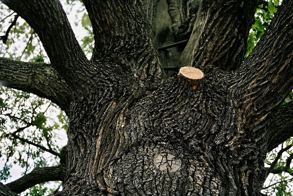 “Ich habe nicht nur die größte Krone unter den Eichen, sondern trage auch ein Herz aus Stahl. Denn ich bin vom Blitz gespalten. Eichhörnchen und Waschbären schlafen in meinem Bauch.” (Team WO, Auszug Interview “Zehlendorfer Eiche”).